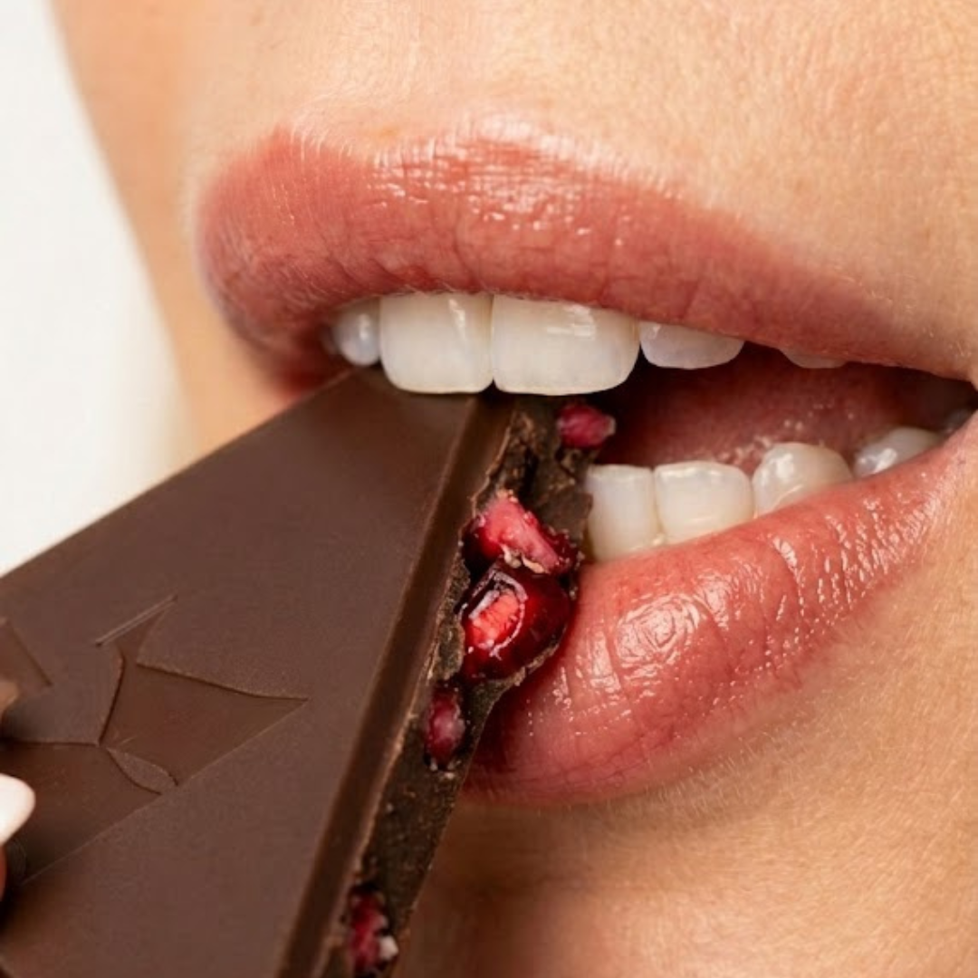 Lasst die edle Zartbitterschokolade langsam auf der Zunge zergehen. Schmeckt den fruchtigen Crunch der Granatapfelkerne und die Kraft der natürlichen Zutaten wie Maca und Ashwagandha.